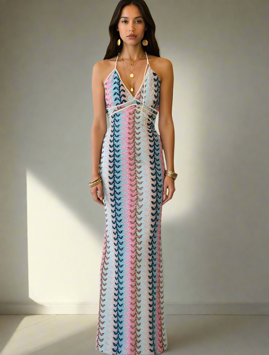 Abito in tessuto strutturato leggero con allacciatura al collo.