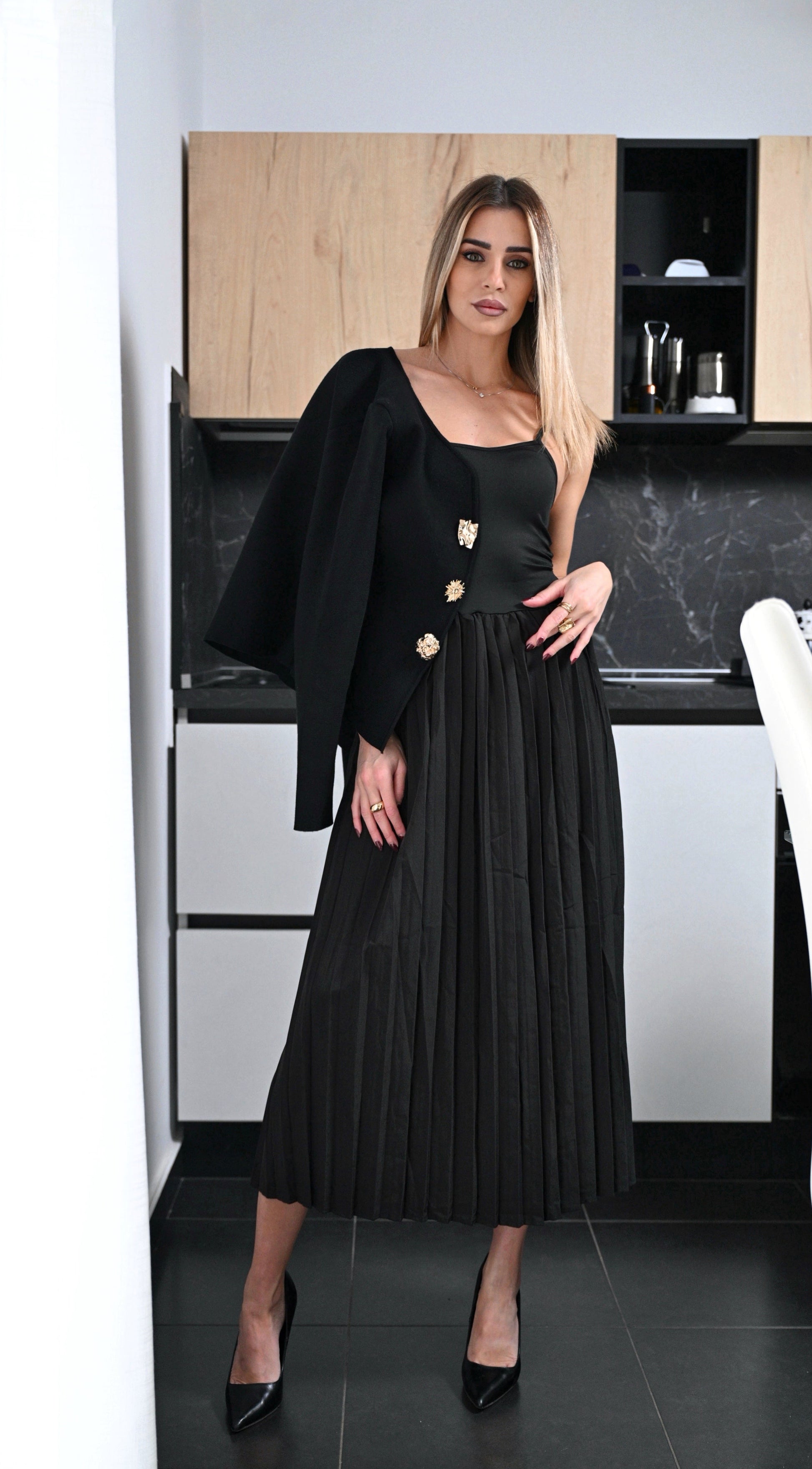 Capo 2: abito midi caratterizzata da un'elegante lavorazione plissé (pieghe), che dona fluidità e movimento.