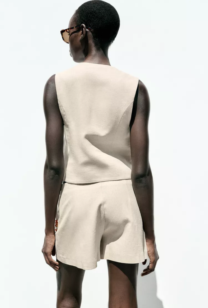 Coordinato in simil lino composto da Gilet+Pantagonna con elastico in vita;