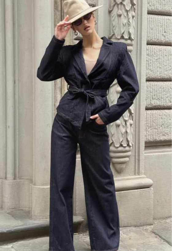 Coordinato in denim blu scuro