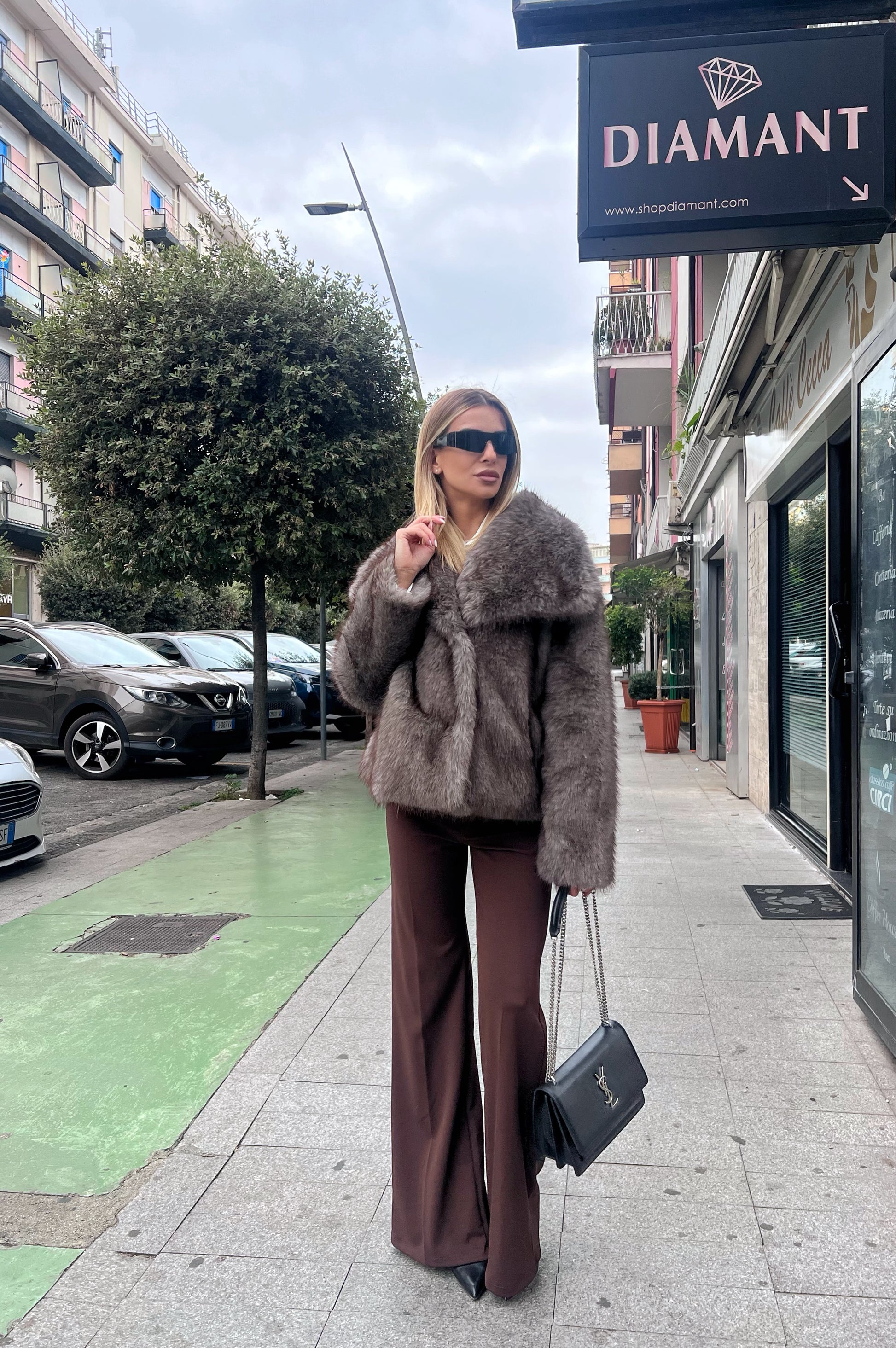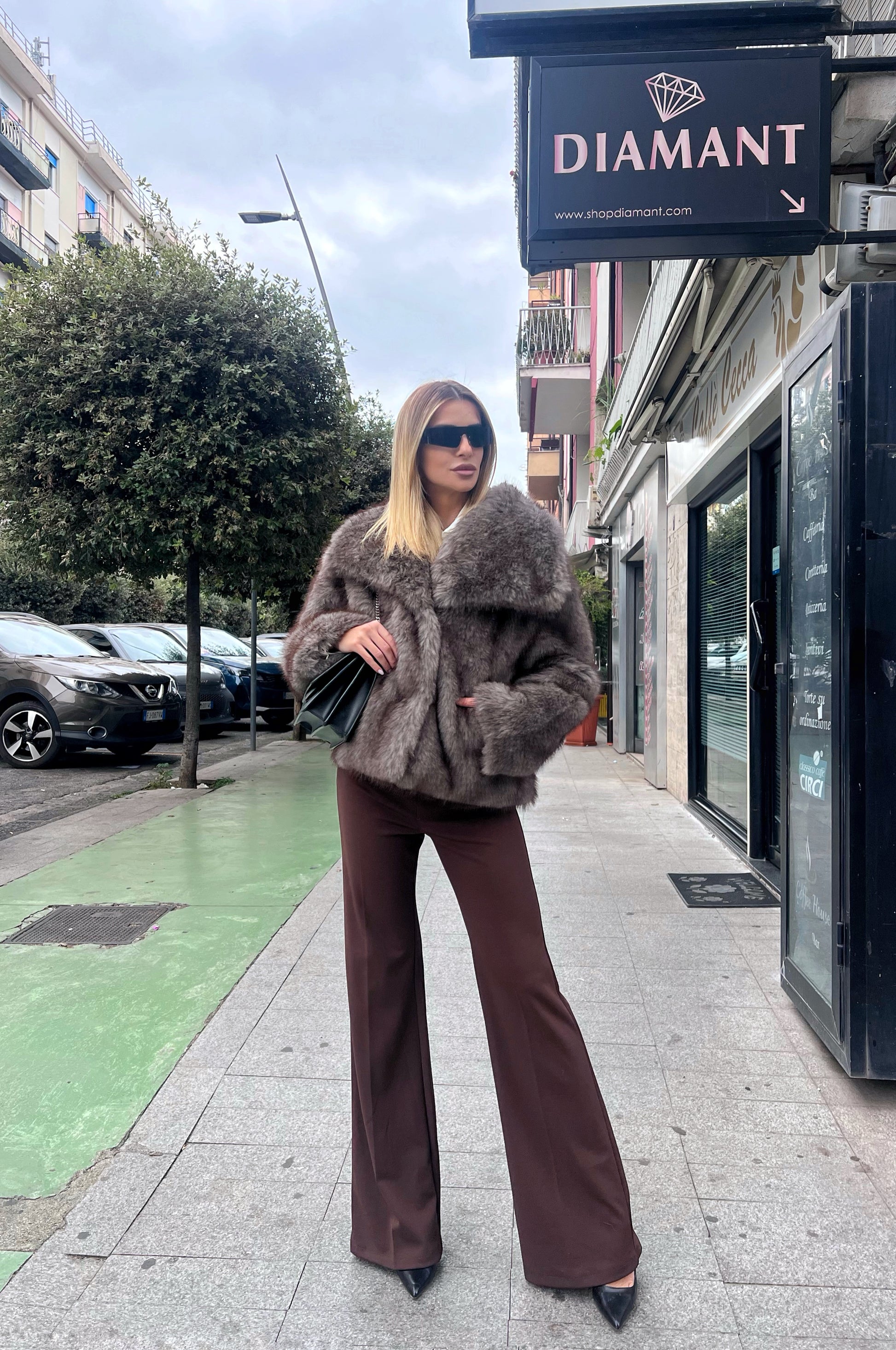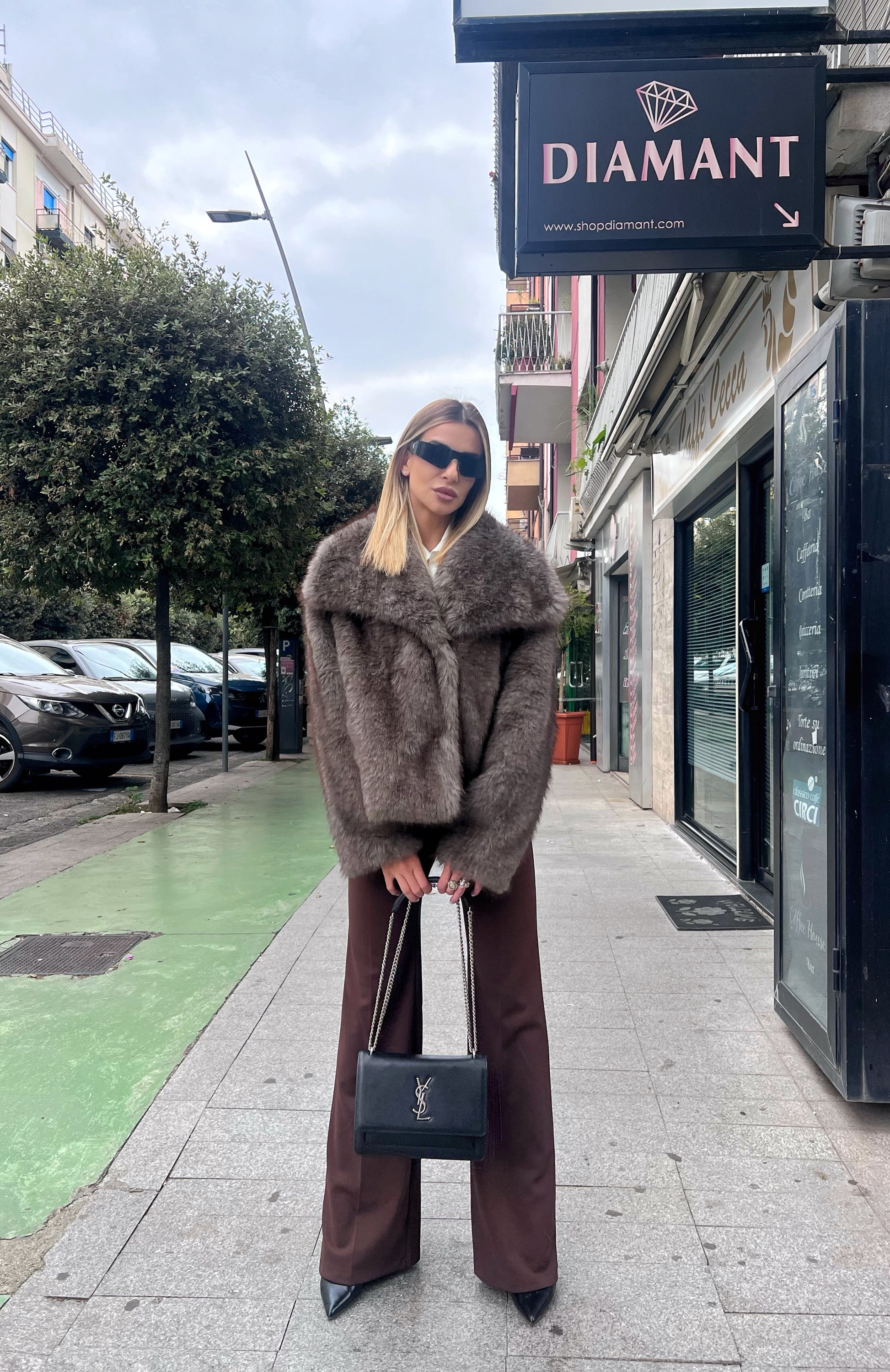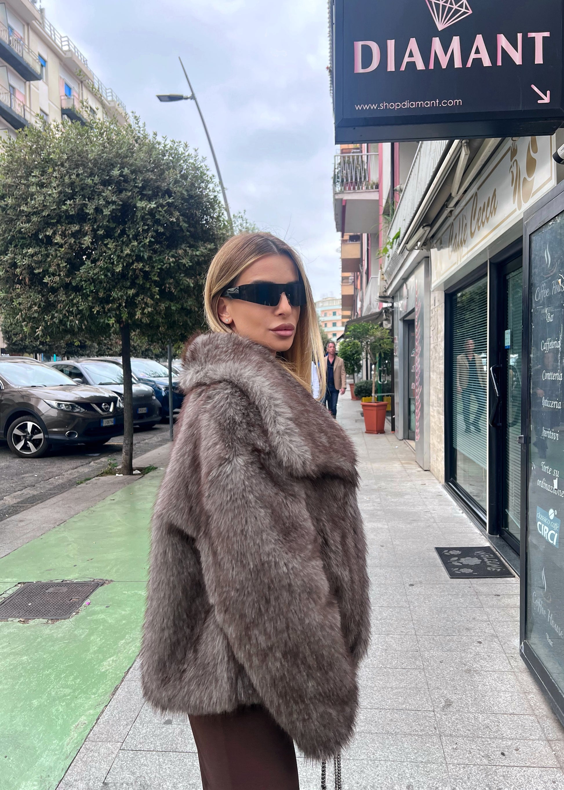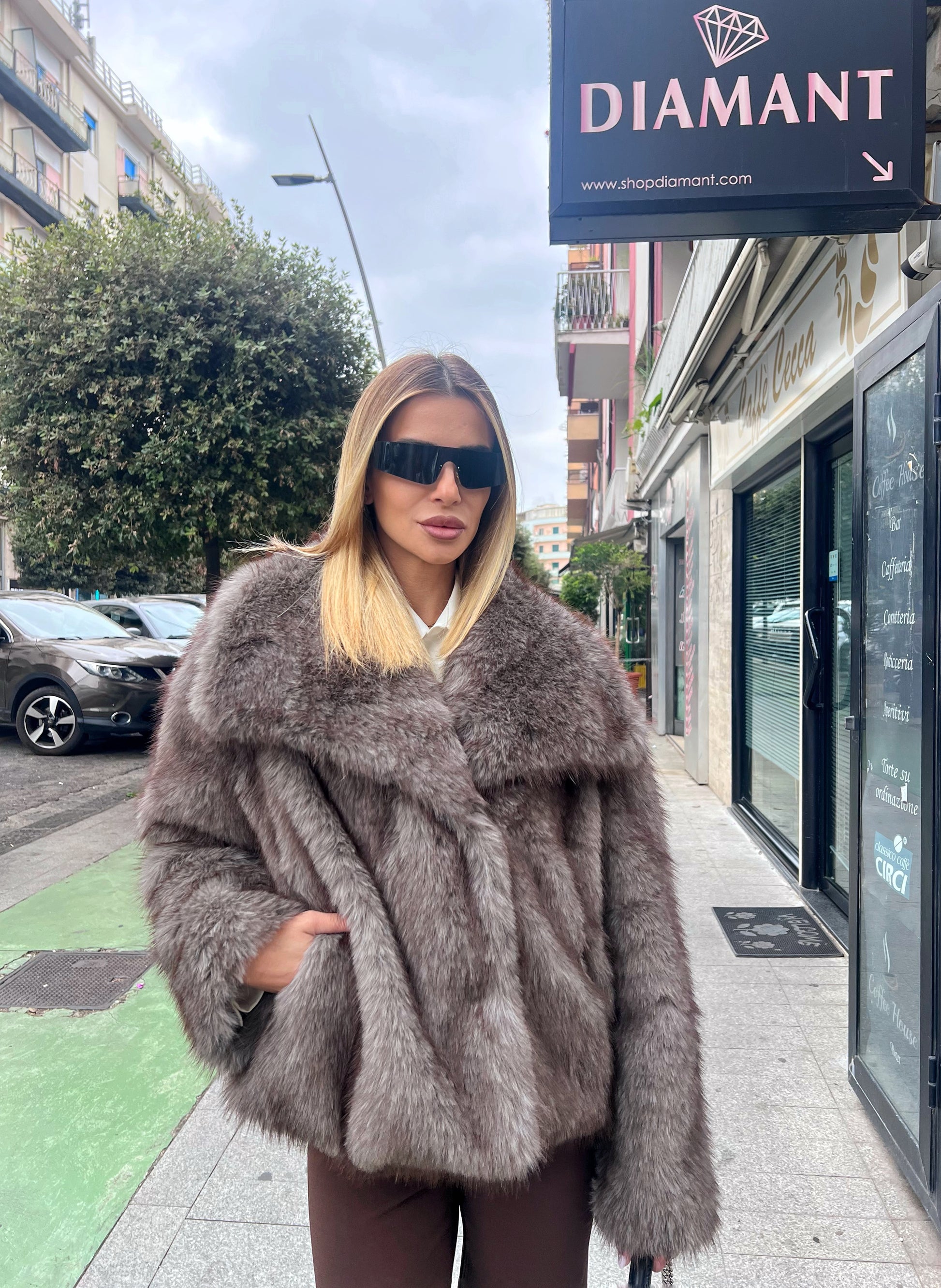 La texture della pelliccia sintetica è incredibilmente soffice e setosa al tatto, imitando fedelmente la sensazione della pelliccia vera. La fodera interna in raso garantisce il massimo comfort a contatto con la pelle. È un capo ideale per le serate invernali e per le occasioni speciali, ma anche un'ottima scelta per chi vuole unire moda e consapevolezza etica.