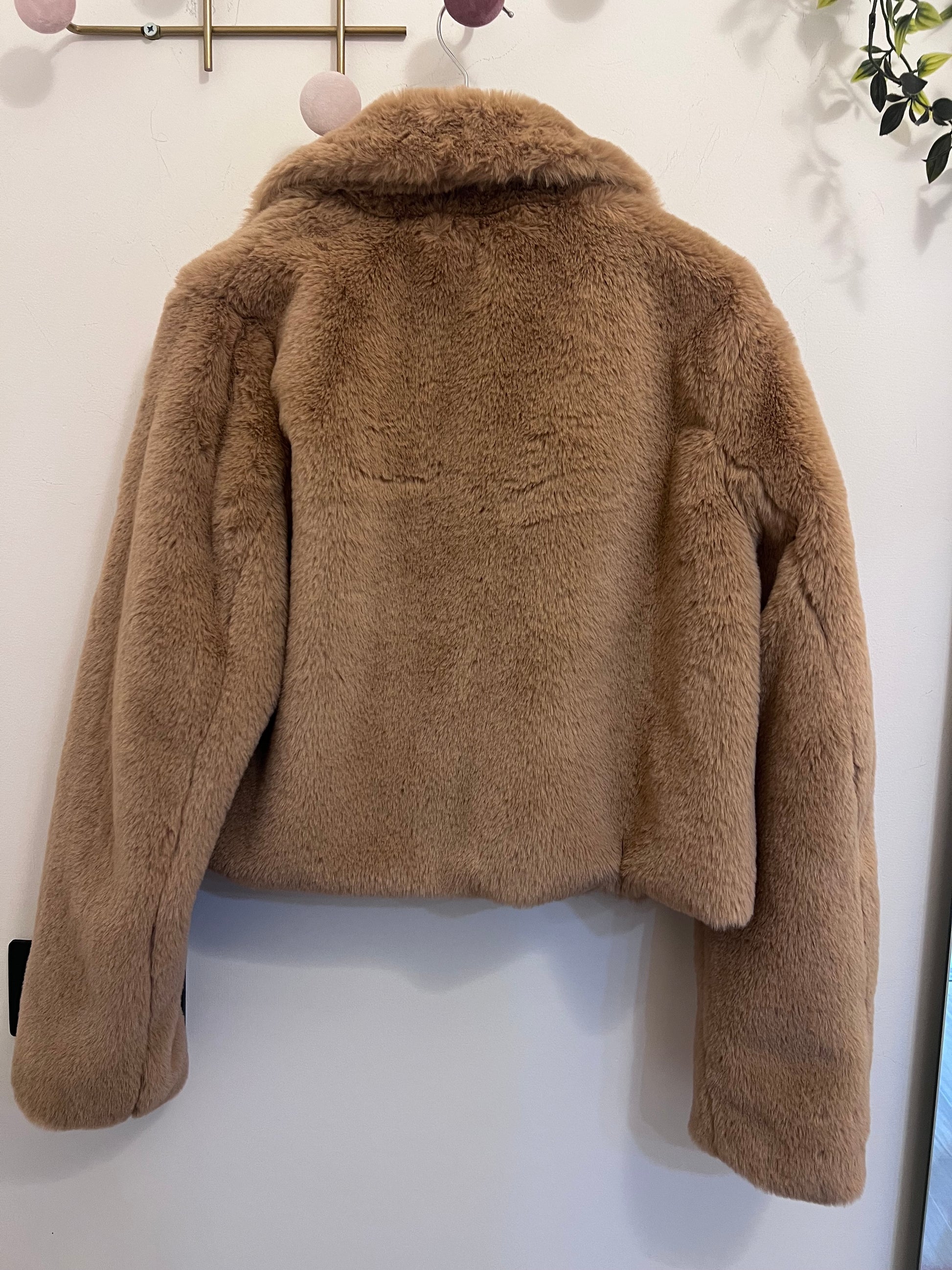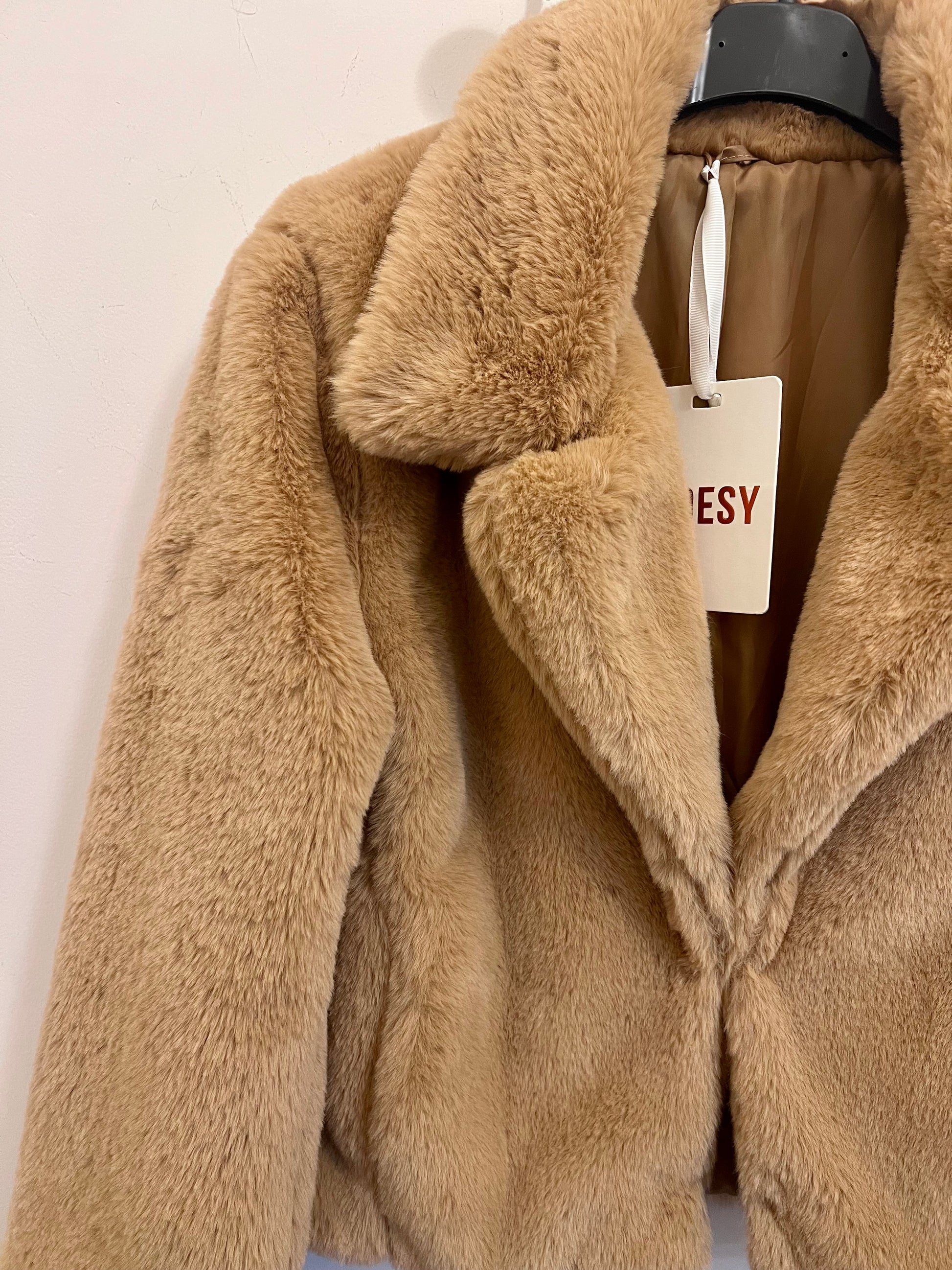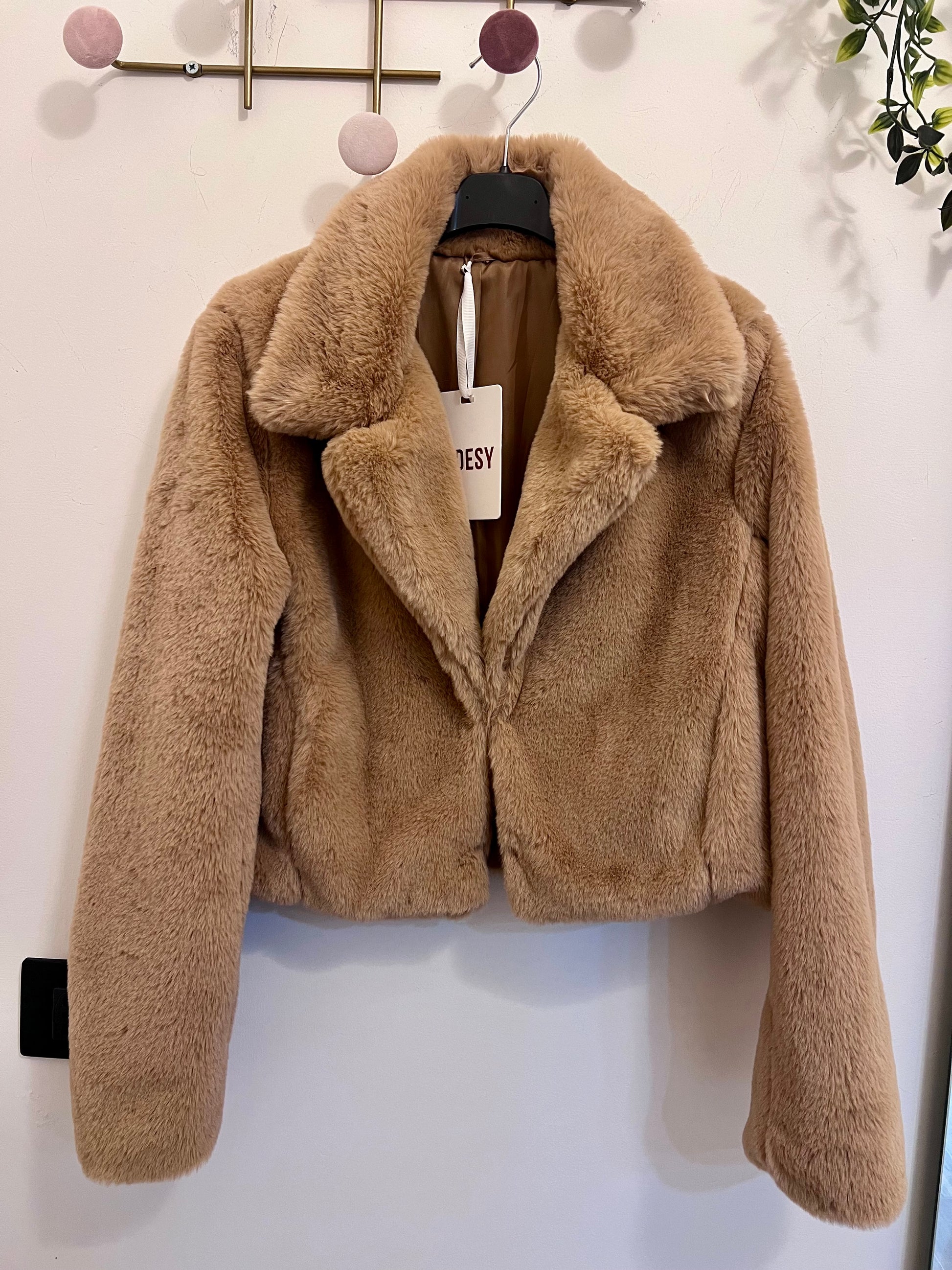Vestibilità comoda. Ecopelliccia morbidissima, interno con fodera, tasche laterali e chiusura con gancio.