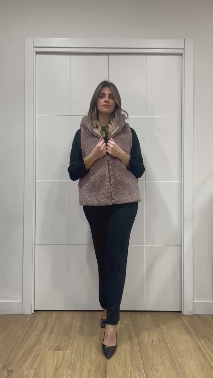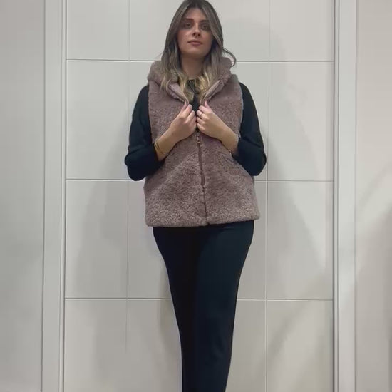Gilet colore rosa cipria in pile borg con collo a imbuto