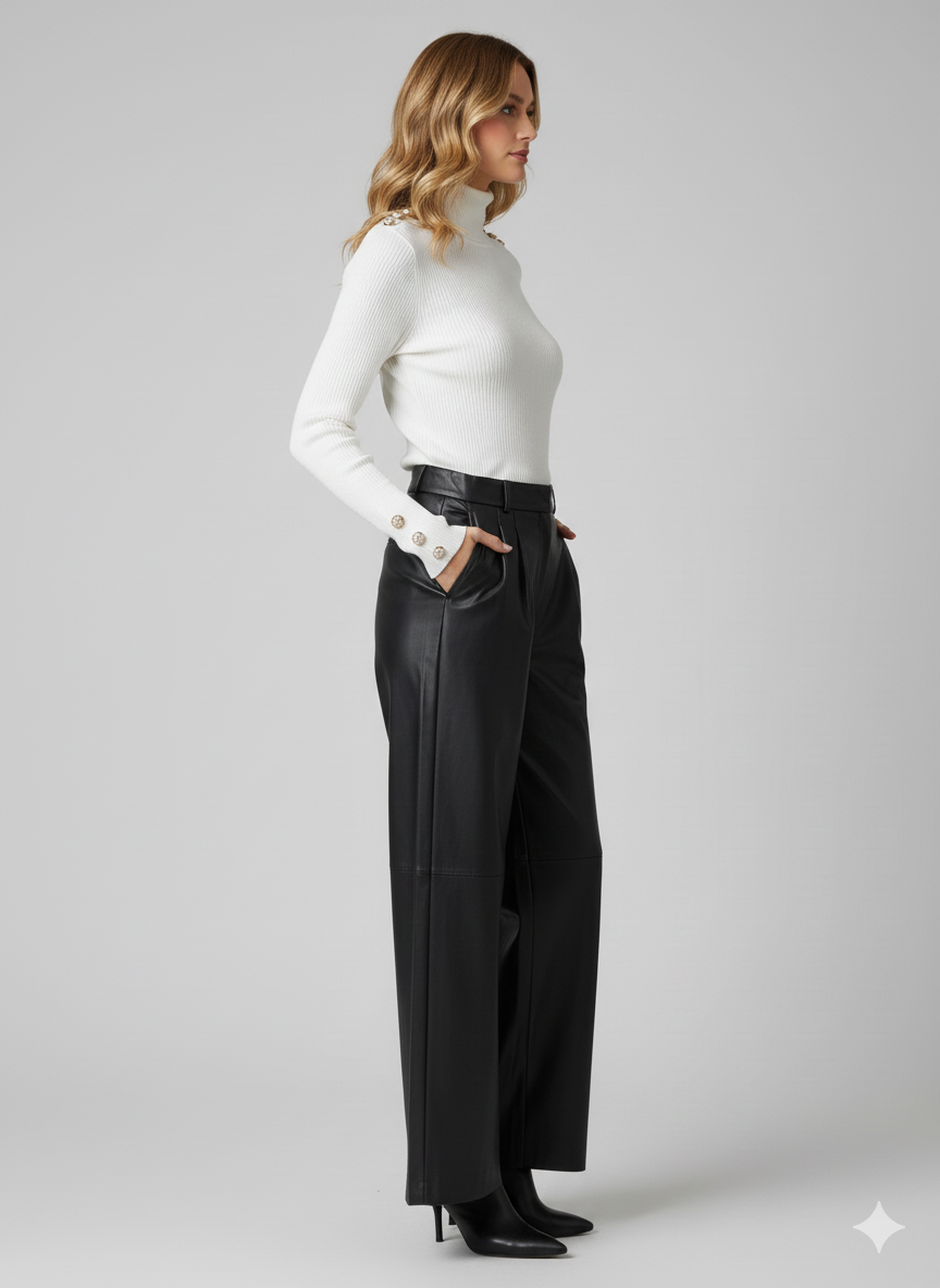 Caldo maglioncino a costine dal fit avvolgente, impreziosito da raffinati bottoni dorati su spalle e polsini. Un capo passe-partout che unisce eleganza e comfort.