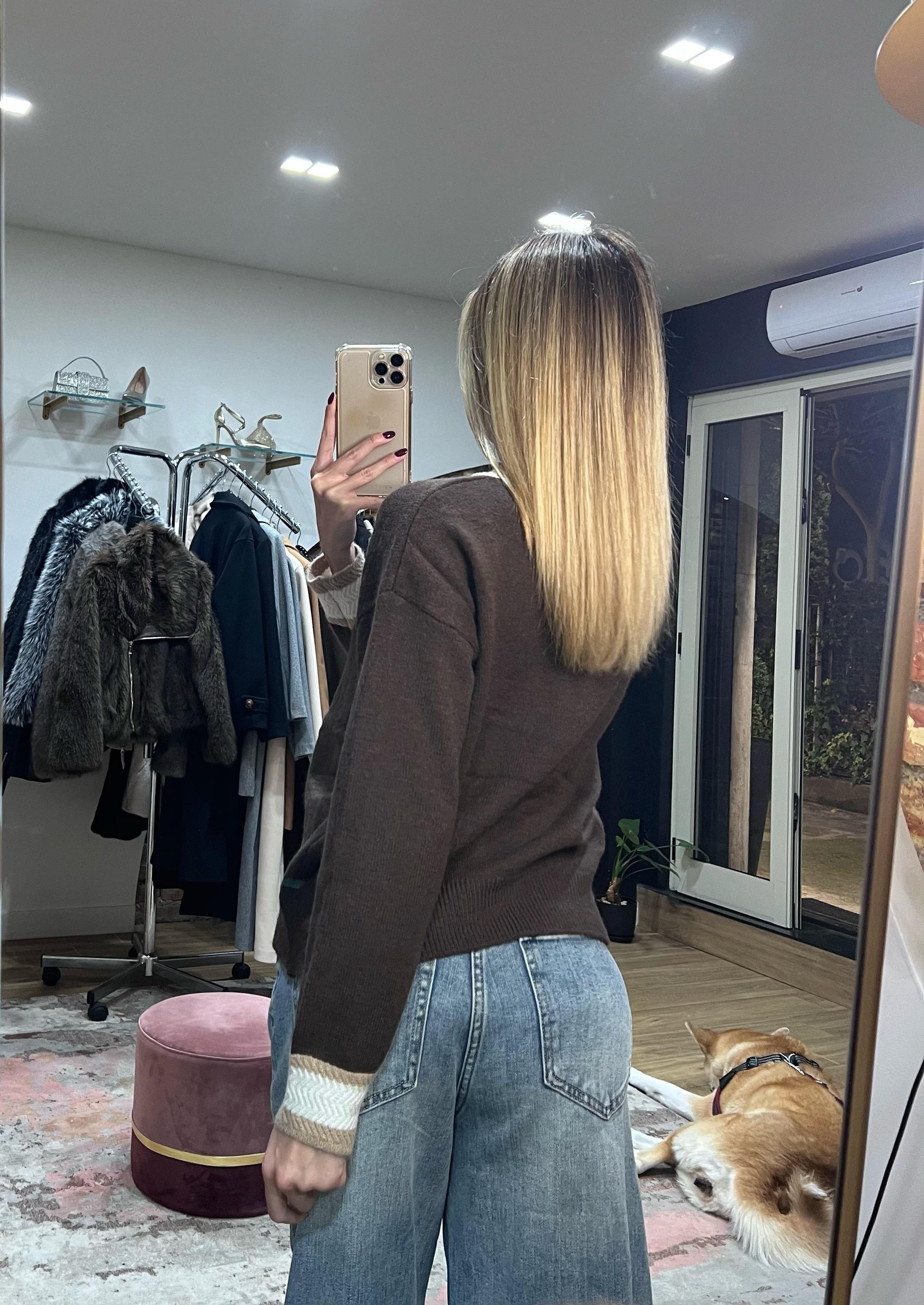 Maglioncino Oversize Cioccolato con Orso Teddy Appliqué
